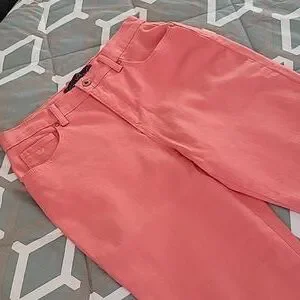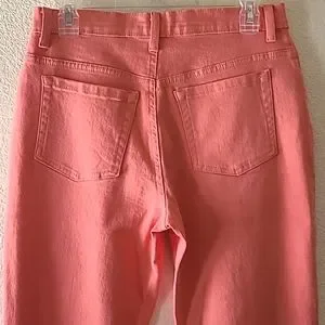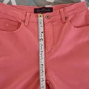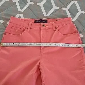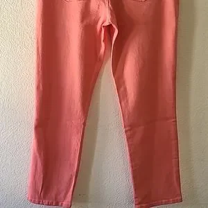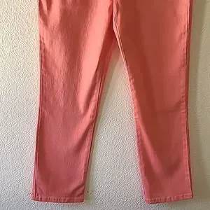 Cute and comfy brand new without tag Gloria Vanderbilt Amanda Missy Short jeans. No stains or damages. Front zip. Two regular and one tiny size pockets in front. Two back pockets. Size 8. Approximate length from waist to bottom hem 38". Approximate waist laid flat side to side 14 1/2". Coral color. See photos for measurements and details. Depending on lighting, color may vary from the photos to the actual item. Please ask any questions prior to purchase.