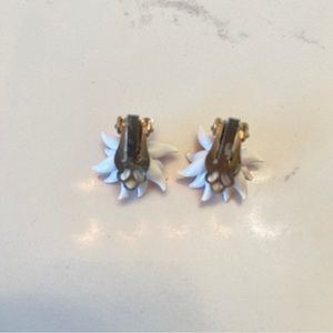 Add some vintage floral fun to your outfit with this fun set! It’s a pretty bouquet of flowers in a happy, coral color, accented with sparkly red rhinestones. Clip earrings each feature a single flower. Pin measures 2.5 inches by 1.5 inches. Earrings are 3/4 inch diameter. In excellent condition.