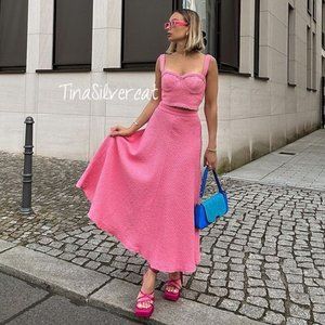 BLOGGER'S FAVE! Zara 2 Piece Set A-Line Skirt And Bustier Pink NWT