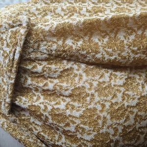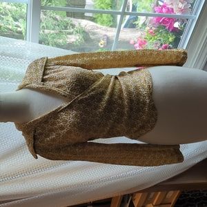 This vintage look golden brocade wrap with long sleeves is absolutely stunning! Though it has seen better days and shows some signs of wear, it still manages to radiate elegance and charm. The golden brocade gives it a timeless appeal, and the long sleeves add a touch of sophistication. Despite its unknown brand and size, fret not, for the measurements, see the last image.