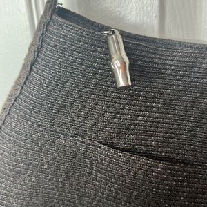 1 zipper pocket inside and two inside open pockets on the opposite side of the zippper pocket