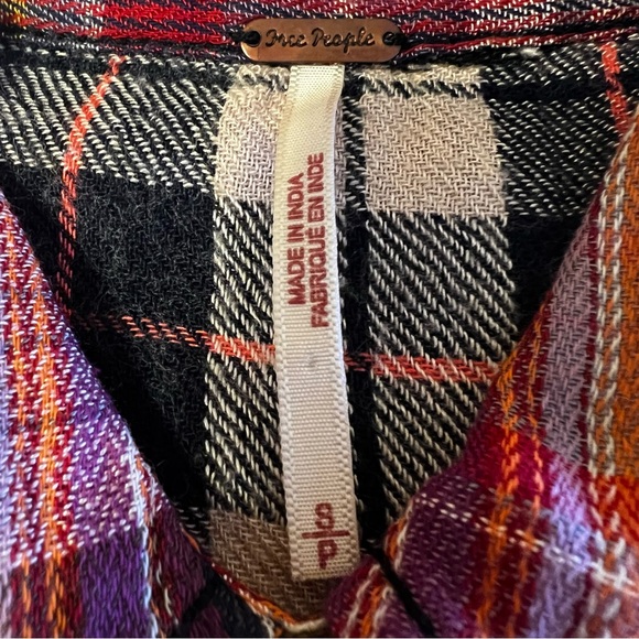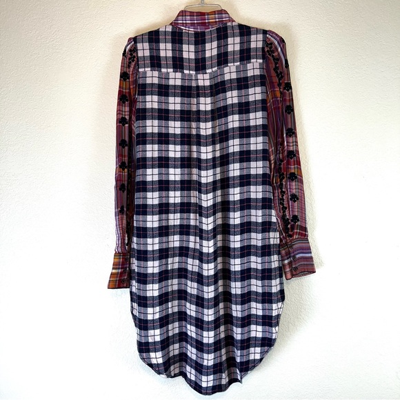 Free People Women’s Plaid Wool Blend Embroidered Long Sleeve Shirt Dress Sz S