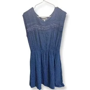 Blue Polkadot dress with elastic waste. Size small. SHELL: 100% RAYON