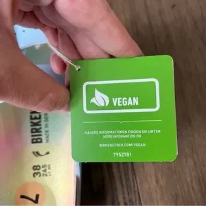 Vegan, have the look and feel of real leather. Inside sole has pretty tie dye rainbow design.