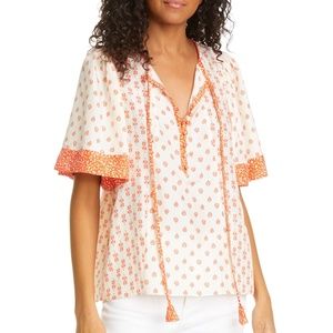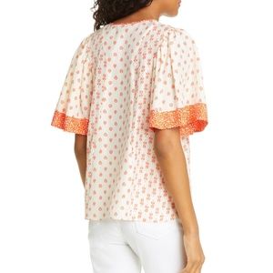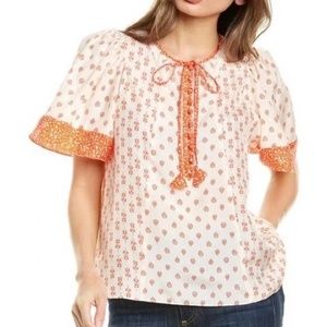 ✨NWT✨ REBECCA TAYLOR Silk Top Lily Block Print Blouse in Tomato Sz US 2 (XS)