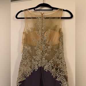Skirt is purple with train.
