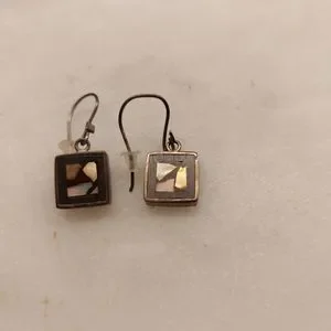Silver earrings with inlaid shell i forget the name abalone? maybe usually made in Mexico