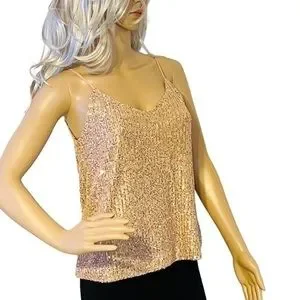 Gorgeous sparkle sequin spaghetti strap. Camisole. V-neck. Tank top. Adjustable straps.
