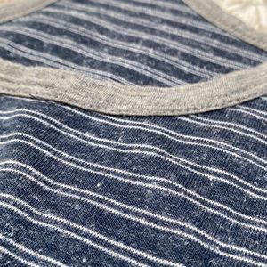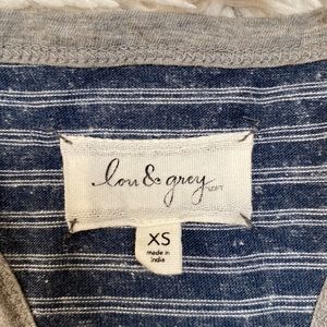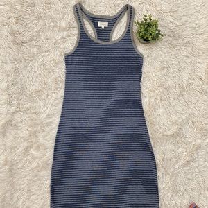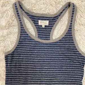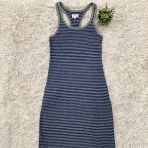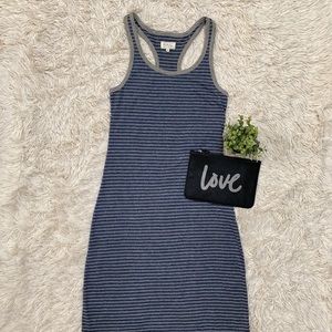 Lou & Grey racer back striped maxi dress in blue with gray trim.