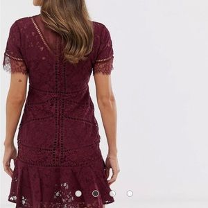 🎄holiday season🎁French Connection Chante lace midi dress in Burgundy