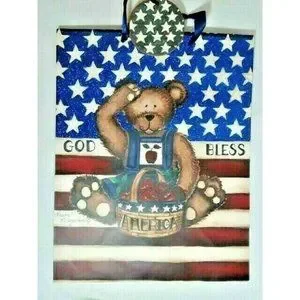 God Bless America Saluting Bear Patriotic 2-Pack Gift Bag Tag 13 x 10 Inch NEW