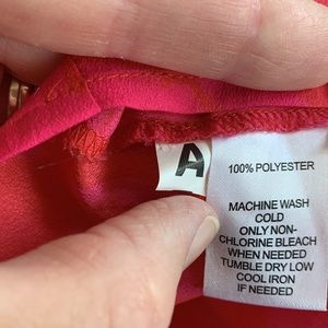 Stunning , Barbie-pink and coral, sleeveless blouse. Two, vertical ruffles run down the length of blouse on front . Rounded neckline has a zipper closure at the back. Zipper has a grosgrain black ribbon pull. (Ribbon can be removed) Straight hem. This blouse pairs beautifully with black dress pants or white jeans and can be dressed up or down.