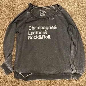 Champagne & Leather & Rock & Roll distressed Chaser sweater! No trades