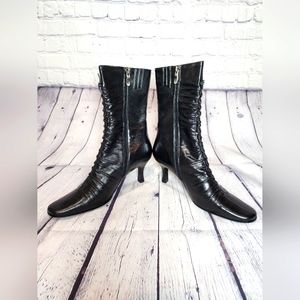 Smalto Black Mid-calf ruched boots, Size 38, Black