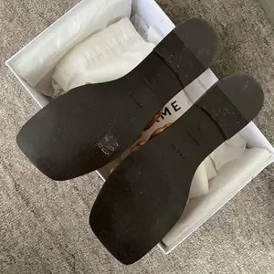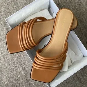 A series of tubular straps charms this charmingly minimalist square-toed slide sandal resting on a superslim footbed.