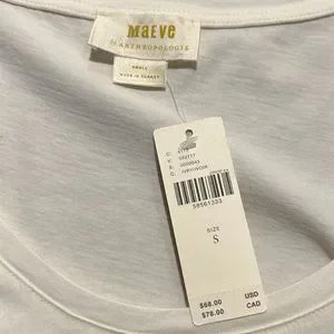 New With Tags (NWT) white top by Maeve from Anthropologie. Small small. Can be styled with slacks or jeans - dressed up or down. Non-smoking household. No trades.
