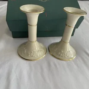 This is a Lenox Fruits of Life Pair of Candlesticks Fine China. It has a 24k Trim