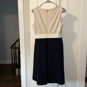 Great condition, size 6, navy blue/white/cream, V neck zipper with TH logo pull and hook/eye closure on back