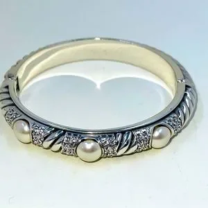 BRIGHTON Pearl Magic Crystal Hinged Bracelet Bangle