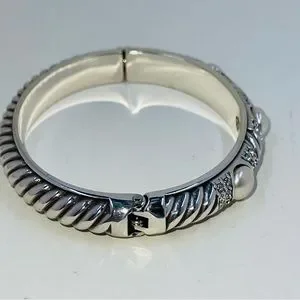 Excellent Brighton “Pearl Magic” crystal hinged bangle bracelet is 6 3/4” on the inside.