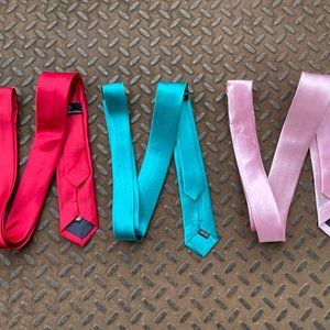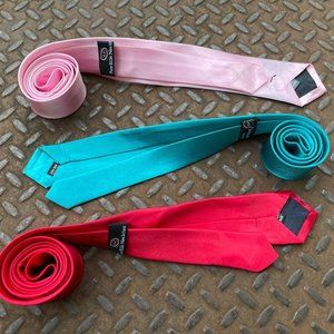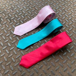 Lot of 3 Ties Skinny Ties Red Turquoise Pink Slim Fit Fashion Ties X3