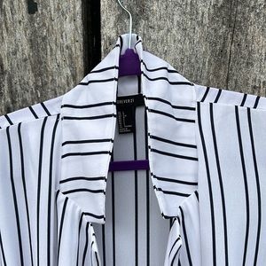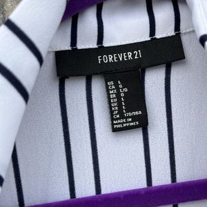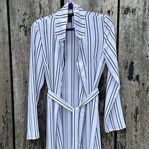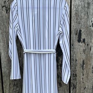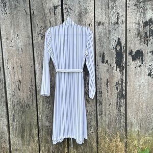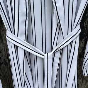 Up for sale we find this nice robe from Forever 21. White with blue stripes. Medium length sleeves with a single tie. The collar is large as is the size. 💕