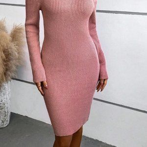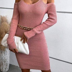 Cold Shoulder Chain Detail Sweater Dress Dusty Pink
