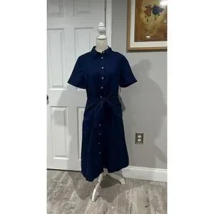 Vineyard vines Blue Linen Blend Tie Front Dress Size 10 NWT