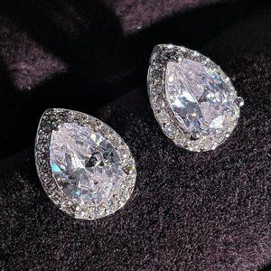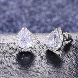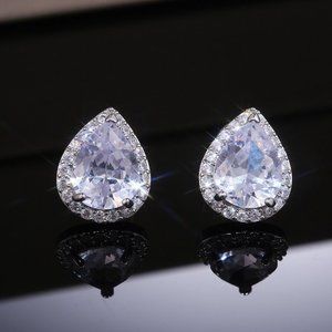 🎁Classy Pear Cut White CZ Cute Wedding Earrings, MLNN1157