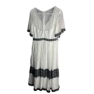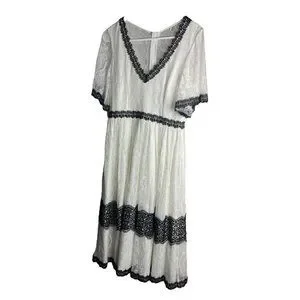 Wolf And Badger Nissa Dress EU 40 US 8 White Black Lace V Neck MIDI Short Sleeve