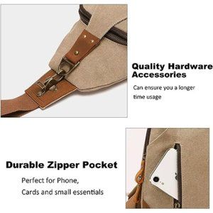 Material: Made of waterproof Canvas with genuine leather decoration.Durable,lightweight,well-made,compact and spacious,ultra-comfortable across your back and chest