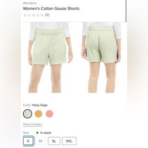Women’s Wonderly Brand size Small in a beautiful light sage colormeasured 13” across waist as seen in picture. Very cute, and comfortable shorts!
