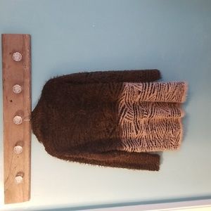 Anthropologie Oliver by Escio Jacket SZ LG. Beautiful Boho jacket/Cardigan. Very soft. The armpit to armpit measures 24 in. The length is 32 in. The length of the sleeves are 24 in. The colors are Tan, Brown and Black. Single snap closure.
