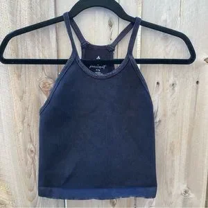 4. Free People Movement Happiness Runs Long Crop Tank in Washed Black size XL