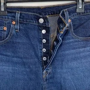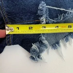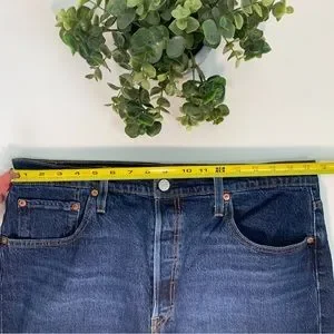These popular high rise Levi’s 501 women’s jean shorts have been very lightly worn and are in excellent condition! They feature a classic five pocket design, a button closure, and a five button fly. The denim is high quality and thick feeling, but with some stretch.