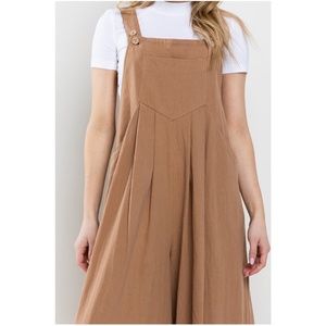 024 Mocha Linen Button Wide Leg Jumpsuit