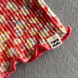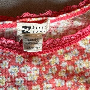 Floral lace strap billabong pink yellow tank top! Cute and comfy but a bit small on me. Not sure it’s exact age but it reminds me of the old school styles from the 90’s and early 2000s! Great condition.