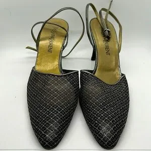 Yves Saint Laurent Auth Gray/Gold Strappy Stiletto Heel Shoes **Size 10** 🔥🔥