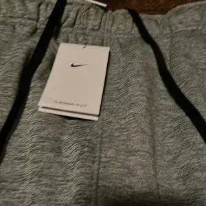 New! Mens Nike Therma Fit Fleece Lined Jogger. Grey color way. Mens size XXL waist 18.25 inseam 30. Drawstring waist and two hand pockets. Pristine condition. See all photos