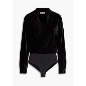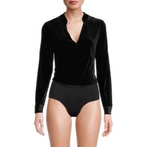 L’AGENCE NEW Marcella Wrap Effect Velvet Bodysuit In Black Size XS $450.00