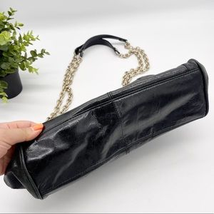 BANANA REPUBLIC Black Leather Flap Top Gold Metal Chain Shoulder / Crossbody Bag