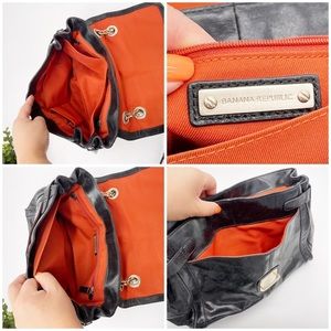 Banana Republic black leather flap top convertible shoulder bag / crossbody bag