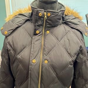 Great condition! Women’s S Lands End Down jacket. 70% goose down. Zip and snap closure. 2 outer patch pockets and 2 inner zip pockets. Removable hood. Slight piling on knit collar. See pics for details. Thanks for looking!
