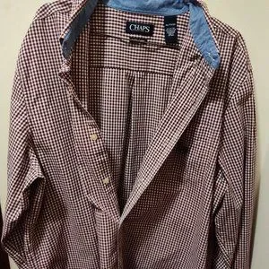 Chaps Easy Care Men's Plaid Long Sleeve Button Down Shirt Size XL