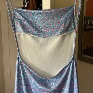 Blue floral backless dress size small. Popular on instagram and TikTok.