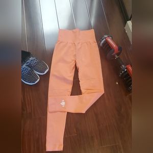 High waisted. Most comfortable Salmon color workout pants.