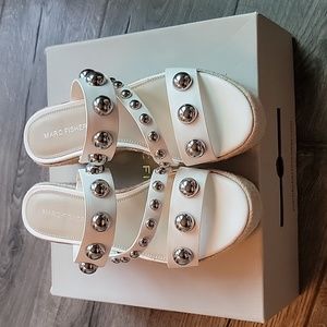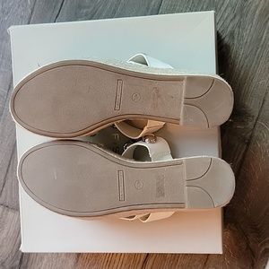 Summer sandal espadrilles with silver studs embellishments on vegan white leather straps