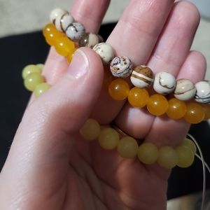 Included are honey calcite, yellow jade, and polychrome jasper. Each are 8mm beads on a 8 inch stretchy cord. Each bracelet has been charged and cleansed.