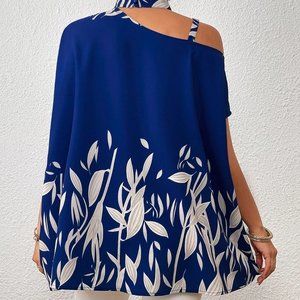 Blue Boho Womens Asymmetrical Neck Chain Detail Batwing Sleeve Blouse