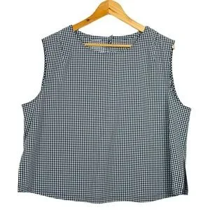 Wayre Shift & Snap Gingham Sleeveless No Iron Travel Cropped Tank Top Blouse